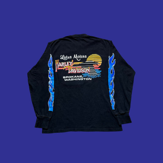 Vintage Harley Davidson Blue Flame 1988 Long Sleeve Size L