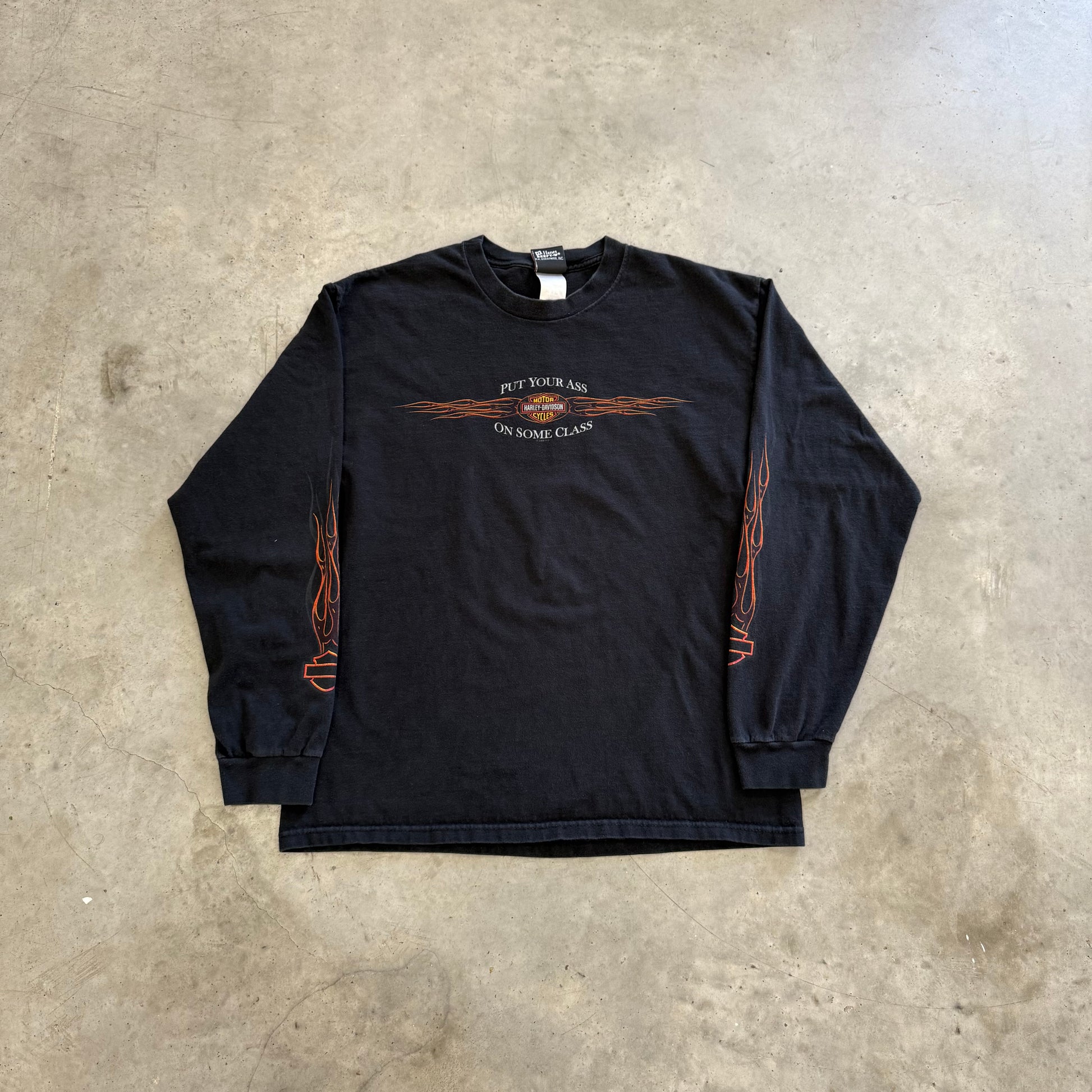 Harley Davidson “Put Your Ass On Some Class” Flame Long Sleeve Shirt Size L