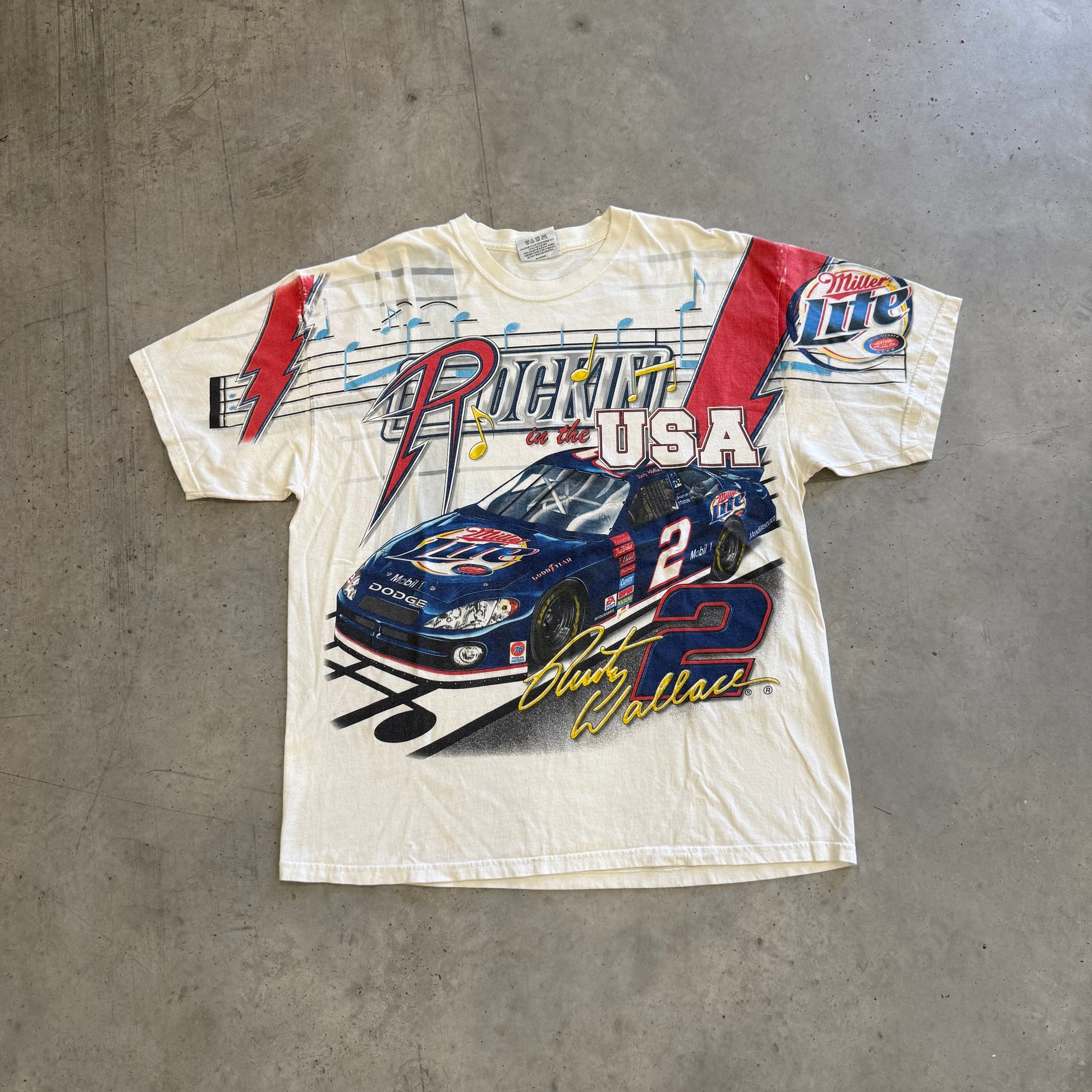 Vintage Nascar Rusty Wallace “Rockin In The USA” AOP Shirt Size XL