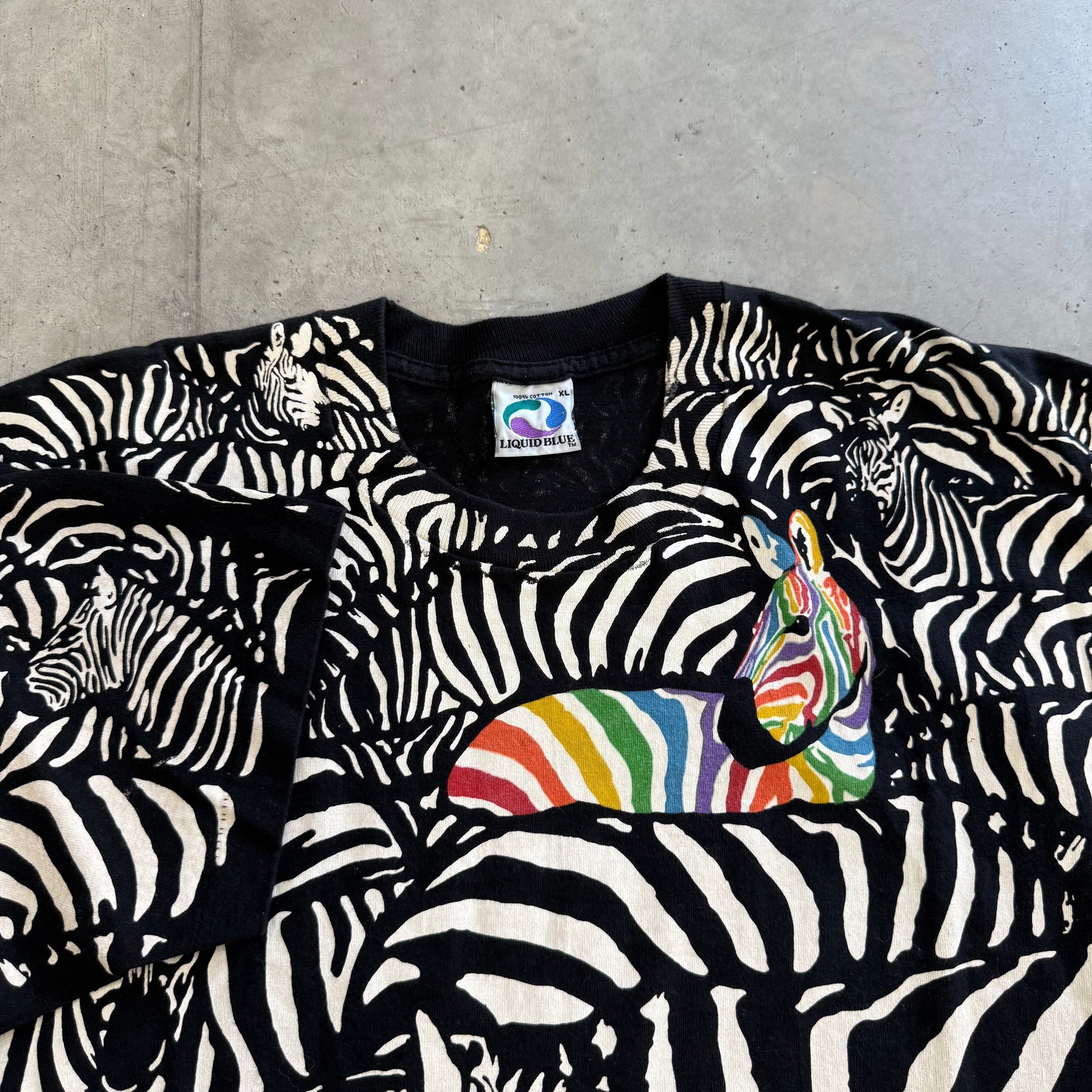 Vintage Zebra Liquid Blue 1993 AOP Shirt Size XL